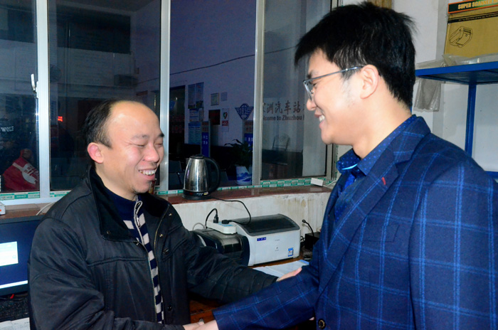 凌晨5:40時(shí),朱董事長(zhǎng)首先來(lái)到株洲長(zhǎng)途汽車站,與員工們一一握手,致以新春的問(wèn)候:“同志們,你們好!” “同志們,辛苦了!” “同志們,我給大家拜年了!”隨即踏上6:00時(shí)發(fā)往長(zhǎng)沙的班車上,送上象征吉祥平安的慰問(wèn)紅包,送上新春的祝福,囑咐其注意行車安全,并目送班車徐徐駛出車站。接著,董事長(zhǎng)來(lái)到汽車中心站,先后向車站票房工作人員、三品檢查人員、服務(wù)班工作人員、GPS監(jiān)控人員和車輛安檢人員拜年,并向工作人員噓寒問(wèn)暖。當(dāng)來(lái)到GPS監(jiān)控中心,董事長(zhǎng)與車站和監(jiān)控工作人員親切交流,向其了解春節(jié)期間車輛運(yùn)行情況,并囑咐監(jiān)控人員一定要積極負(fù)責(zé),要充分運(yùn)用先進(jìn)的高科技手段,將車輛動(dòng)態(tài)監(jiān)控工作認(rèn)真落實(shí)到位,將隱患消滅在萌芽狀態(tài)。再接著,董事長(zhǎng)相繼來(lái)到汽車北站、江南汽車站和汽車南站慰問(wèn)一線員工。每到一處,都洋溢著春天的喜悅。尤其是在汽車南站,董事長(zhǎng)與員工們一道細(xì)細(xì)品味著員工們親手泡制的姜糖茶,與員工們一道暢談企業(yè)的發(fā)展大計(jì),與員工們一道憧憬著企業(yè)的美好未來(lái),春天的歡樂(lè)氣氛更加濃烈